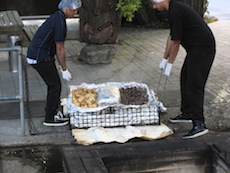 Heute war mal ein bisschen Wandern dran. Wir wanderten einen Pfad entlang der an verschiedenen Kraterseen, Bächen und anderen heissen, rauchenden und brodelden Gewässern vorbei führte. Einer der Kraterseen war ca. 50 grad heiss, so dass man gerade noch den Finger hinein halten konnte. Wir kamen auch an einem See vorbei der brodelte. Überall hatte es farbigen Sand und Steine, welche wir einsammelten. Wir kamen auch an einem eher grösseren Bach vorbei, der ca. 75 grad heiss war. Es war sehr warm heute und die Sonne schien direkt auf unsere Köpfe. Nach dem Wandern gingen wir mit einem Boot noch auf einen See, der mal heiss war. Wir sahen verschiedene Löcher, die dampften und andere Sachen. Nach der Tour waren wir alle erschöpft, vorallem Daddy. Er musste Noe suchen gehen, da dieser einfach abgehauen war. Am Abend gingen wir in ein Maori Dorf und assen die berühmte Speise der Maori. Vor dem Essen wurden uns Traditionen und andere spanende Details vom Leben der Maori gezeigt. (Natürlich in früheren Zeiten) Nach dem Essen gingen wir noch Glühwürmchen anschauen und unser Führer erklärte uns die verschiedenen Gebräuche von Pflanzen und Bäumen. Die berühmte Speise der Maori = Hangi → Poulet,Lamm und verschiedene Kartoffeln in einem Loch im Boden mit heissen steinen gekocht Tagestip: Wenn ihr mal die Chance habt, einen Maori Stamm zu besuchen und dieses Hangi zu essen, dann bucht das umbedingt. Auch Glühwürmchen sind sehr faszinierend und es lohnt sich, sie zu sehen.