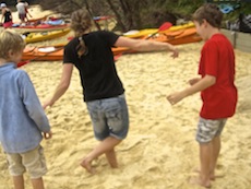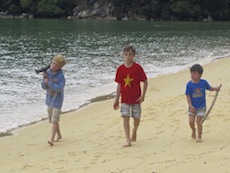 Heute sind wir mit einem Wassertaxi zum National Park der Gegend gefahren. Das Taxi hat uns an einem Strand abgeladen, und kam uns nach einer Stunde wieder abholen. In der Zwischenzeit haben die Jungs am Strand gespielt, und ich bin mit Mami, Daddy und Luc ein Stück gelaufen zu einem anderen Strand. Als wir zurück kamen, hatten die Jungs eine Falle gebaut. Sie wollten Daddy hinein locken, aber er durchschaute sie, und Mami musste daran glauben.:) Danach fuhren wir noch ein Stück und gönnten uns ein Eis. Wassertaxi→ Unser Wassertaxi holte uns an einem Treffpunkt ab. Wir konnten aufsteigen und ein Traktor fuhr das Boot, dann zum Wasser und lud es ab. Beim Zurückkommen lud er es wieder auf, und fuhr uns zum Treffpunkt. ![]() ganz nach oben (klick!) |