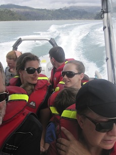 Über die längste Hängebrücke von Neuseeland sind wir heute gegangen. Es hatte viele Hummeln und die haben mich echt aufgeregt!:/ Noe wollte unbedingt aufs Jetboot und wir hatten sogar Glück und der Bootfahrer legte eine Extrafahrt ein. Wir jumpten über Wellen, machten Drehungen und scharfe Kurfen mit dem Boot. Auch Luc fand das lustig, solange er nicht nass wurde. So hatten wir Kinder unsere Action und Mami ihre Bootsfahrt in der Schlucht, nur nicht so ruhig.;) Zum Schluss konnten wir noch über die Schlucht fliegen in Sesseln (AHHHHHHHHHH);P Tagestip: Die Leute in Neuseeland sind sehr flexibel, und wenn ihr mal was machen wollt dann handelt oder fragt um eine Extratour. ![]() |