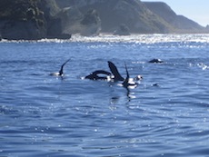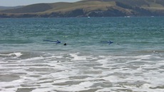 Es war windig am Morgen und das Schwimmen mit Delfinen wurde für kleinere Kinder wie Noe nicht empfohlen, deshalb mussten wir Luc wieder abholen von der Babysitterin. Das hat mich recht genervt, denn ich hätte lieber ausgeschlafen.:( Zum Glück besserte sich das Wetter und wir konnten am Mittag gehen. Luc mussten wir wieder abladen bei der Babysitterin, und dann gingen wir wieder zum Treffpunkt. Dort wurden wir in Taucheranzüge gesteckt und bekamen Flossen und Brille mit Schnorchel dazu. Es wurde ein Sicherheitsvideo gezeigt und auch wie beim Whale-Watch gingen wir mit dem Bus zum Boot. Mir und Mami wurde es wieder schlecht und wir kauten beide einen Kaugummi dagegen. Er nüzte zum Glück recht gut. Das Schnorcheln mit den Delfinen war einfach traumhaft! Ich hätte noch den ganzen Tag mit ihnen schwimmen können, aber leider war irgendwann Schluss.:(((Übrigens waren die Delfine wild. Beim zurück Fahren sahen wir noch eine ganze Delfin Schule, die Saltos in jeder Art vorführten. Tagestip: Mit wilden Delfinen zu schwimmen darf man in Neuseeland nicht verpassen und das Geräusch und die anderen Tipps, die sie euch geben, solltet ihr unbedingt versuchen, auch wenn sie komisch aussehen oder tönen. |