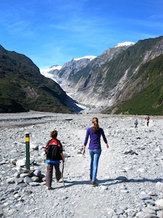 Heute sind wir zum Franz Josef Gletscher gelaufen und haben ihn betrachtet. Beim zurück Laufen sind Louis und ich unter einer der beiden Wasserfälle gestanden, das hat Spass gemacht! Zuerst wollten wir eigentlich nicht, aber wir waren schon so nass vom daneben Stehen, dass wir es doch wagten. Dannach waren unsere Kleider durchnässt und kühlten uns schön von der heissen Sonne ab.:) Am Nachmittag flogen wir mit dem Helikopter auf den Fox Gletscher, wo wir landeten und betrachteten beide Gletscher von der Luft. Nach dem Helikopterflug, den alle genossen haben ausser Luc, sind wir noch in ein Kiwi Museum gegangen, und haben echte Kiwis angeschaut. Franz Josef Gletscher→ Kommt vom Mount Cook hinunter, wie der Fox Gletscher daneben. Tagestip: Diese Gletscher sind sehr schön um zu betrachten vorallem der Fox Gletscher, also macht halt und schaut sie euch an, wenn ihr Zeit habt auf euer Reise in Neuseeland. ![]() ![]() |