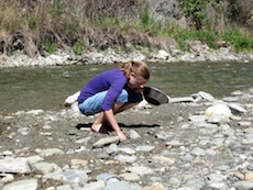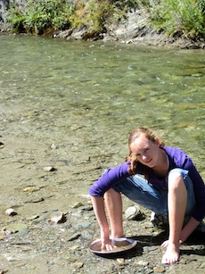Heute versuchten wir unser Glück beim Goldwaschen in Arrowtown, leider ohne Erfolg. :( Wir wuschen stundenland bachaufwärts, und Louis und ich suchten überall nach Goldnuggets. Nach dem Misserfolg gingen wir was essen, und schauten uns das Dorf an, welches wie die Shantytown gebaut ist, aber mit modernen Läden darin. Tagestip: Schaut immer in Neuseeland bei Flüssen und Seen, ob was glitzert. Es wurden schon einige Goldnuggets entdeckt, sogar auf Feldern. |